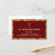 Fronteira de gradiente de burgundy profissional com assistência médica ouro caduceus moderna e elegante cartões de visitas de lembrete de compromisso em fundo vermelho escuro e burgundy. Modelo personalizado para o médico de família, para a prática do grupo médico ou para o médico ou profissional de saúde independente.