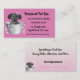 Cartões de visitas bonitas para os colchões de cães. Faça com que a sua empresa seja percebida com este cachorrinho numa banheira com bolhas. O plano de fundo brilhante cor-de-rosa não deixa de ter a certeza de que a sua empresa é notada.