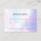 Cartão de encontro iridescente simples e elegante, personalize com o seu nome e detalhes de contato da empresa. Perfeito para uma ampla gama de profissões, incluindo: cuidados dentários, terapeutas, consultores, contadores, advogados, esteticistas, consultores de beleza e cabelo, spas, estilistas, artistas de maquiagem, salões de unhas, para citar alguns! Criado por Thisisnotme©