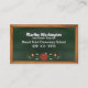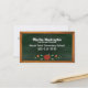 O cartão de visita do professor à moda, com gráficos do divertimento de um quadro-negro antiquado em um quadro de madeira. Os gráficos bonitos do estilo country de uma decoração da maçã e da videira na parte inferior fronteiam. O texto branco no quadro-negro está pronto para personalizar. O espaço da conferência do pai/professor, no verso do cartão é feito no preto em um fundo branco. Modelo de cartão de negócios agradável para professores e tutores.