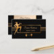 Cartão de visita com uma silhueta de uma esportiva levantando pesos em um elegante rosa de ouro em design preto. A parte de trás deste cartão de visita tem espaço para compromissos. Este cartão de visita de compromisso também pode ser personalizado para ser usado como um cartão de visita regular. Excelente de um instrutor pessoal ou de malhação.