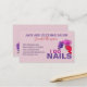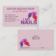 Cartão de visita de compromisso personalizado do Nail Technician com I do unhas. Gráficos de esmalte e garrafas vazando.