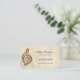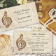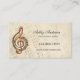 Cartão de visita com uma imagem artística de uma nota musical num fundo de uma folha de música desbotada. No verso estão campos de texto para marcar compromissos.