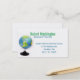 cartão de visita do professor na moda, em branco, com gráficos coloridos de um globo mundial de mesa. Espaço de conferência de pais/professores, no verso da carta. Bom modelo de cartão de negócios para professores e tutores. Personalize este cartão para alterar o texto.