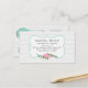 Um cartão de visita que caracteriza um fundo de madeira cinzento na parte dianteira e na parte traseira. As características dianteiras iluminam o quadro da cerceta com design floral cor-de-rosa. As características traseiras que combinam a cerceta fundem mais seco e ferro de ondulação para a hora e a data da nomeação.