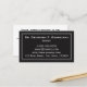 Essa design cartão de visita escura, simples, minimalista e profissional apresenta uma fina linha tripla, e talvez possa ser usada por um profissional médico como um dentista ou um médico. As informações na frente podem ser personalizadas e a parte traseira contém um formulário de lembrete de compromisso personalizável.