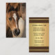 Cartão de visita com um cavalo jovem com as suas informações personalizadas no verso num fundo elegante dourado/castanho. Esta cartão de visita é bela para quem trabalha com cavalos, personalizável para aluguel estável, escola de equitação, clínica, programa de criação ou outros propósitos.