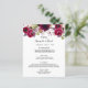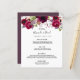 Um cartão de cardápio do estilo boêmico elegante. Leve rosas de cor aquosa, de cor rosa e burgundy. Modelos para seus nomes, data e menu de casamento. Fundo branco na frente, no gabinete, roxo profundo nas costas. Letras pretas coloridas.