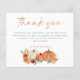 Um valor para o alternativo do ORÇAMENTO em tamanho menor de 4,5 x 5,6" de semirbrilho de 110 lbs, que é de espessura semelhante a um cartão postal (no entanto, não é adequado para uso como cartão postal). POR FAVOR, NOTE que existe UM por folha. Bote De Foto De Autumn Pumpkins. Obrigado. Obrigado. Está no estilo escrito à mão. Pumpkins e florais em tons de outono, cremes e laranja estão no fundo. Personalize facilmente o resto do texto para seus próprios detalhes e substitua a foto de amostra no verso por seu favorito do seu dia.