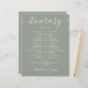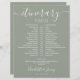 Esta cinza de na moda e a linha cronológica do itinerário do casamento branco podem ser personalizadas com os detalhes do seu casamento em letras quic num fundo verde sage. Projetado por Thisnotme©