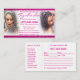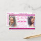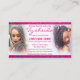 Este é um design de cartão de cartão de visita/compromisso para cabelos que travam estilistas de salões e latificantes na comunidade americana africana. As cores são o brilho magenta branco e rosa. Imagem do cabelo sendo trançado. Personalize este modelo para torná-lo seu próprio usuário, adicionando todas as informações, inclusive os identificadores de mídia social, como o facebook e o instagram. Entregue aos clientes como cartões de compromisso.