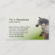 Um modelo de cartão de negócios veterinário com uma foto de um cavalo cinzento, de uma vitela do charolês, uma cabra alpina e uma galinha preta, cortou em um fundo verde graduado. O modelo setup para um grande e veterinário animal pequeno, cuja cirurgia ou a clínica trate o cavalar e os outros cavalos, rebanhos animais de fazenda, gado e aves domésticas. Há uns espaços para nomeações no reverso, embora estas linhas podem ser personalizadas para o outro texto. Fotografia pelo ruralfrance.
