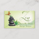 Zen Contemporâneo Spa e Terapêutica de massagem Cartão de visita apresentam borboleta, pedra quente e folhas de bambu