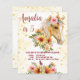 Cavalo de palomino com girassóis e flores cor-de-rosa modelo de convite para festa de aniversario de meninas floral. Belo retrato de cavalo de aquarela, bom para pessoas carinhosas de cavalo.