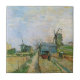 Horta em Montmartre por Vincent van Gogh é uma pintura agrícola paisagística de arte fina pós-impressionista vintage. Uma cena agrícola com uma fazenda, uma estrada, um trator, campos, jardins e um moinho de vento em uma colina ao longe.