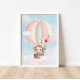 Adicione um toque de calor e suavidade ao seu pequeno berçário, quarto ou sala de jogos, com este adorável macaco bebê a saltar pelas nuvens num poster de balão de ar quente rosa. Esta arte aquarela trará vida a qualquer quarto!