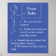Um impressão engraçado de "Regras da Casa" com um tom sarcástico que avisa aos hóspedes que a juração é apenas para enfatizar, os animais são favorecidos sobre os humanos e as meias com buracos são sagradas! Esta impressão de arte é perfeita para a pessoa intransigente que gosta de dizer isso com um leve toque de língua na bochecha. O design, a silhueta, o conselho e o texto estão todos em branco sobre um fundo azul "denimoso". O texto é personalizável. Aproveite!