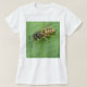 Esta bela camisa de senhoras mostra uma fotografia detalhada de uma linda mosca-listrada, preta e amarela, descansada numa folha. A fotografia foi tirada usando macro-fotografia para uma imagem extremamente detalhada e nítida. A design é mostrada em uma camisa branca de boneca bebê, mas também está disponível em muitos outros estilos e cores de roupas para mulheres, crianças, bebês e homens.