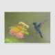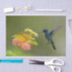 Uma bela foto de um beija-flor alimentando-se de flores amarelas e cor-de-rosa, é apresentada em papel tecidual. Uma maneira adorável de embrulhar joias, presentes pequenos ou encher um saco de presentes!