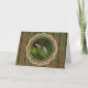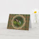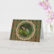Minha fotografia original de um beija-flor pairando em voo, processada em um estilo ligeiramente ilustrado e pintado e colocada sobre um fundo de onda antiga em forma quadrada em círculo. Este cartão é vazio e pode ser usado em qualquer ocasião e lhe dá bastante espaço para escrever uma carta sincera a qualquer um.
