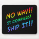 Nenhuma maneira!! Compila! Envie-a!! - mousepad do humor da programação informática no preto com rotulação do arco-íris.