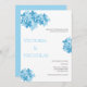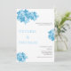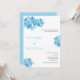 A design mostra um convite de casamento escrito em tipografia azul-céu e negras junto com as drangeas azuis. O design é extremamente elegante, único. O design vai se destacar e será um item extraordinário para o seu casamento.