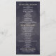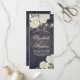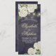 Modelos de Cartões de Rack do Programa de Casamento - Flores de Hydrangea Brancas Elegantes e Luzes de String no Fundo de Linhagens Florais Azul do Marinho Vintage. Um Design perfeito para o seu grande dia. Todo estilo de texto, cores, tamanhos podem ser modificados para ajustado das suas necessidades!