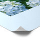 Poster mostrada com um impressão fotográfico de hydrangeas azuis bonito e com fundo azul claro. Personalize este item ou comprar como está.