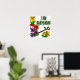 I Dig Plantas poster, um jardineiro divertido dizendo com flores florescentes em vermelho, amarelo e roxo, e uma abelha e um inseto de senhora. A pá está brotando uma folha.