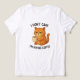 This is a humorous cartoon illustration featuring an orange tabby cat with a grumpy expression, holding a white mug of coffee. The text "I DON'T CARE" is written above the cat and "I'M HAVING COFFEE" below it, conveying a relatable message about prioritizing one's morning coffee over everything else.