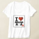 Texto preto com coração vermelho e design de impressão de pata vermelha declarando seu amor por TT