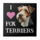 Mostre seu amor pela Fox Terriers com este azulejo com uma adorável Fox Terrier de cabelo de fio com as palavras "I (Heart) Fox Terriers". Perfeito para cada entusiasta da Fox Terrier - deixe o mundo saber o quanto você adora a raça Fox Terrier! conteúdo generativo