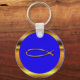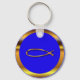 Belo design azul e ouro Ichthys (peixe) em um chaveiro.