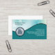 Este cartão de visita de agente imobiliário apresenta um ícone de cinza brilhante sobre um fundo ondulado abstrato verde. A metade superior também cria uma matiz verde, mas com uma imagem fraca de bolhas. Perfeito para empresas relacionadas com a construção ou imóveis. Personalize este cartão imediatamente com seu nome e detalhes.
