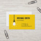 Um cartão de visita com um ícone de lâmpada sobre um fundo amarelo brilhante que certamente atrai atenção. Paleta colorida de preto, branco e amarelo. Perfeito para os eletricistas e para os que fornecem serviços de instalação de cabos elétricos e de iluminação. Personalize com suas informações comerciais os modelos de texto de fácil leitura fornecidos.