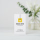 Um cartão de visita com um ícone de lâmpada pendurada sobre um quadrado amarelo. Paleta colorida de preto, branco e amarelo. Perfeito para os eletricistas e para os que fornecem serviços de instalação de cabos elétricos e de iluminação. Personalize com suas informações comerciais os modelos de texto de fácil leitura fornecidos.
