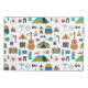 Esta fronha de almofada caracteriza ícones coloridos do gráfico de vetor da engrenagem de acampamento, na parte dianteira e na parte traseira do travesseiro. A cor do fundo pode ser personalizada se desejada.