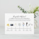 Este convite de casamento moderno tem duplo propósito! Contém todas as informações necessárias para um convite formal juntamente com o seu programa de casamento, que pode ser usado para aconselhar os convidados sobre como o dia será planejado. Tem cronologia, modelo de programas de casamento para preparações, cerimônia, fotos, hora do coquetel ou torrada, refeição, corte do bolo, primeira dança e música e dança, recepção noturna. Cada evento de linha do tempo é acompanhado por um ícone ilustrado de aquarela atraente. Na frente você pode adicionar nomes de casais, os detalhes da cerimônia e recepção e, no verso, você pode adicionar rsvp e quaisquer outros detalhes conforme desejado, incluindo registro de presentes, direção, informações de hotel e transporte e muito mais. Para itens correspondentes e edições personalizadas, contacte o Designer LeahG