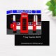 Colagem de ícones ingleses tradicionais - a caixa de telefone vermelha e a caixa postal vermelha na frente de uns peixes e de uma microplaqueta compram. Este design foi criado usando as fotografias que foram manipuladas digital. O cartão perfeito para a pessoa que ama todas as coisas inglesas. sgb01