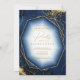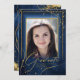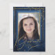 Um fundo de aquarela em tons de azul real a marinho é tocado por um abstrato de linhas de ouro finas e efeitos luminosos brilhantes para criar este belo convite de graduação. A carta também apresenta uma caligrafia elegante e um quadro de gradiente para segurar sua foto. Adicione facilmente os seus próprios detalhes de eventos pessoais utilizando o modelo fornecido. Procure ID867 para ver outras peças e opções de cores para este conjunto.