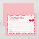 Celebre com o cartão de ideias para noite de encontro de chá de panela Cherry On Top, perfeito para um tema de chá de panela com cereja no topo! Quer seja um "Ela é a cereja no topo do chá de panela" ou você está procurando ideias de chá de panela no Dia dos Namorados, este cartão adiciona um toque romântico ao tema do chá de panela no Dia dos Namorados. Ideal para ideias de chá de panela cor-de-rosa, vibrações de amor no ar no chá de panela, ou uma festa de despedida de solteira. Crie memórias com um chá de panela vermelho e rosa ou um tema de laço no chá de panela!
