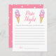 Cartões noturnos de bridal/data de chá de casamento, com ilustração aquosa de coloração rosa e púrpura de sorvete em um cone de waffle. Peça aos hóspedes para preencherem este cartão durante o chá. Será um bom excelente! Perfeito para um chá de verão.
