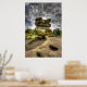 Foto-renderização HDR impressionante de baixa esturação de Idol Rock em Brimham Rocks, Harrogate, North Yorkshire, Inglaterra Reino Unido. 200 toneladas de rocha são balanceadas sobre um solteiro pequeno, formação de rochas completamente natural e um dos muitos prazeres que o North Yorkshire tem para oferecer aos seus visitantes