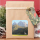 Galeria quadrada de fotos de suvenir da igreja de San Giovanni em Ranui (Sankt Johann) em frente aos picos da montanha Geisler ou Odle dolomites em Papais noeis Maddalena (Sankt Magdalena) no Val di Funes em Itália.