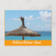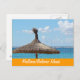 Fotografia de um guarda-chuva de praia contra o maravilhoso mar azul, tirada na ilha de Maiorca no Mar Mediterrâneo na Europa.