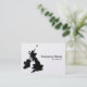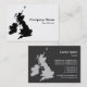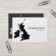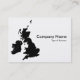 Um cartão de visita com um mapa das Ilhas Britânicas. Detalhes da empresa na frente com nome e detalhes de contato no verso em um estilo tom em contraste com a frente.