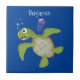 Esta feliz tartaruga verde está soprando bolhas! Desenhado no estilo de ilustração de desenhos bonitos.