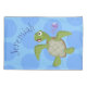 Esta tartaruga verde é uma diversão adorável desenhada no estilo de animação feliz com uma água-viva para companhia.