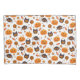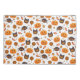 Teste padrão bonito super do Dia das Bruxas. Nesta ilustração você pode ver abóboras, aranhas, corujas, estrelas e doces. O esquema de cores deste design do Dia das Bruxas é laranja, preto e branco.
