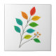 Esta imagem representa um galho simples e estilizado com folhas em negrito e vibrantes. As folhas são pintadas em tons de vermelho, laranja, amarelo, verde e lacrimogêneo, dando à composição uma sensação viva e alegre que lembra o outono e o primavera. O galho é delicadamente desenhado com linhas finas e pretas, e um pequeno aglomerado de bagas de laranja adiciona um toque lúdico. A trabalho de arte é minimalista e moderna, destacando a beleza da natureza através de formas limpas e cores vivas.